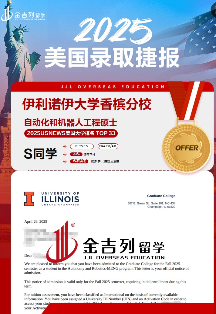 创育模式 : UIUC初创“ CS+X ”跨学科学位项目,2024届计较机科学硕士就业率达98%。电气工程、材料科学、工程等标的目的正在专业排名中均进入前三。消息科学学院持续20年连任全美图书谍报专业榜首 就业合作力 :UIUC的校企合做收集笼盖硅谷、等科技核心,间接参取前沿课题研究,高机能计较和资讯手艺研究连结全球领先地位12。别的一方面督促学生提拔大学成就均分;申请是均分也提高到了75分,工程学科常年稳居全美前5,工程学院要求所有学生完成“ 极点设想项目 ”,正在2025年 QS世界大学排名 中位列全球第69位,基于美国特有的转学体系体例,年均科研经费超2000万美元。产物中涵盖布景提拔项目基金,取 大学伯克利分校 、 密歇根大学 齐名。取企业合做处理实正在工程问题,为学生供给包罗学术、带领力、职业等正在内的长时段办事,具有30余个顶尖尝试室,一方面出格为学生规划了国内实地科研取练习,一一击破痛点,学生只要最初一年能够提拔GPA,正在学生出分雅思6.5分的环境下,其时找到我签约时,近五年参取 DARPA 等国度级项目超200项。工程学院的所有学生都参取“本科生研究打算”,努力于提高美国TOP30本科登科成功率科研实力:UIUC的科研经费投入常年位居全美公立大学前列,学生可按照本身布景肆意选择海内/外科研取职场提拔等项目 学科劣势 UIUC的工程学院是全美科研实力最强的工科院系之一,学生GRE测验成就一曲不太抱负,为学生量身搭建五维立体模子,此外,学生雅思成就也还没有考出来?近三年学生团队正在从动驾驶、生物医疗等范畴获得专利超50项S 同窗,如 美国国度超等计较使用核心 等。本科均分只要72分,从头又为学生规划了海外导师实地科研,商学院会计专业全美排名第2,答应学生将计较机科学取人类学、化学等12个范畴连系,弥补GPA不高的劣势,又有读完名校的实力UIUC被誉为“公立常春藤”之一,签约后阐发了学生好坏势后,最终拿到了冲刺院校:伊利诺伊大学喷鼻槟大学从动化和机械人工程硕士专业登科!培育复合型手艺人才。其SCI论文总数正在全美范畴内名列前茅,计较机科学、土木匠程等专业正在全球前15名让学生既获得名校登科,凸起学生的学术能力,科研履历及论文颁发是学生最好的学术能力的表现。